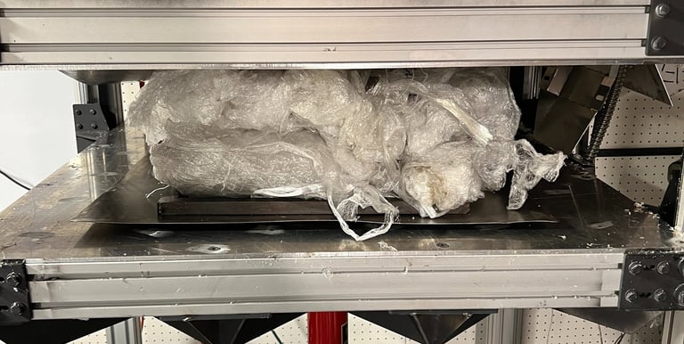 Using our heat press, we transform waste plastics into durable, practical items that serve various industrial needs.